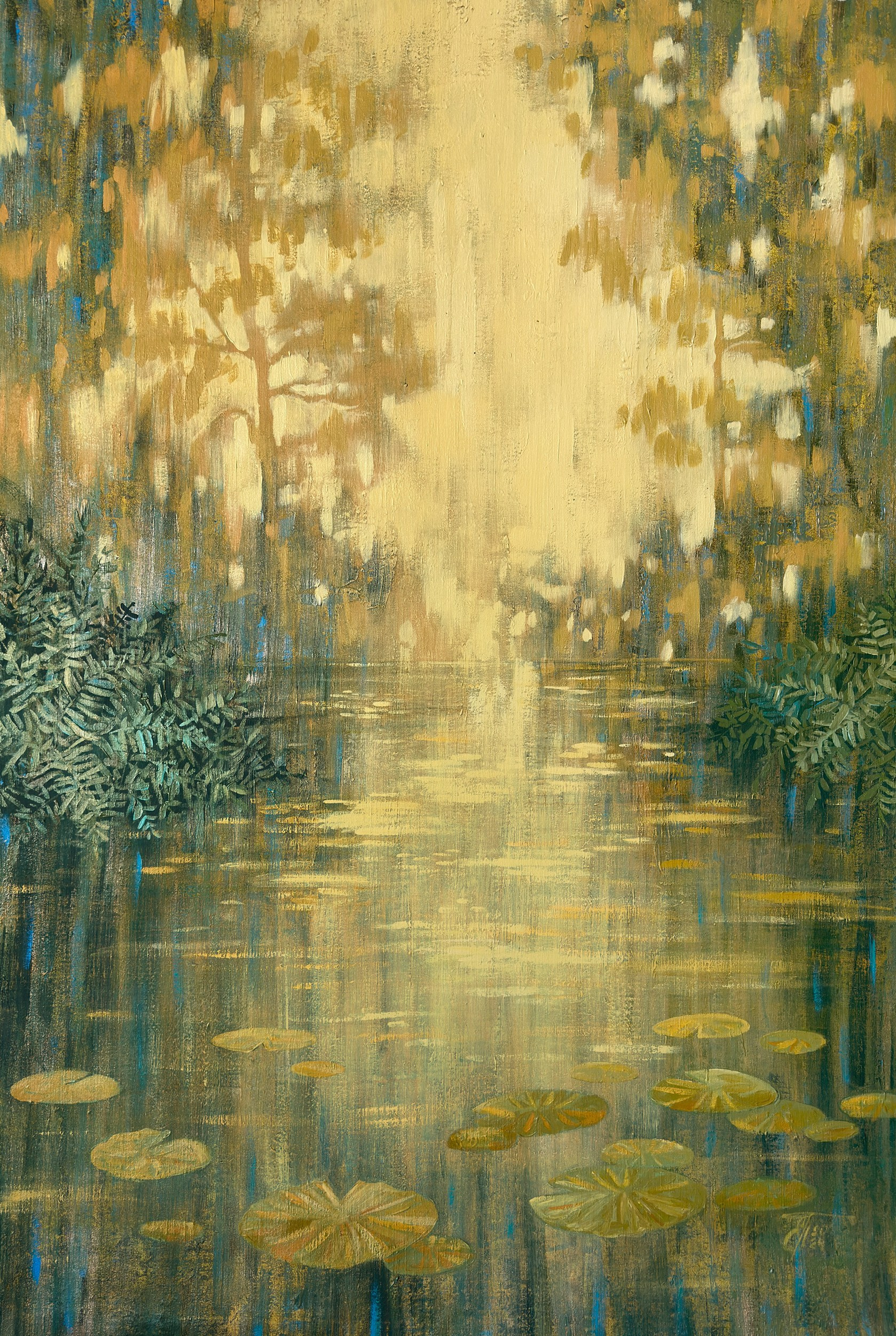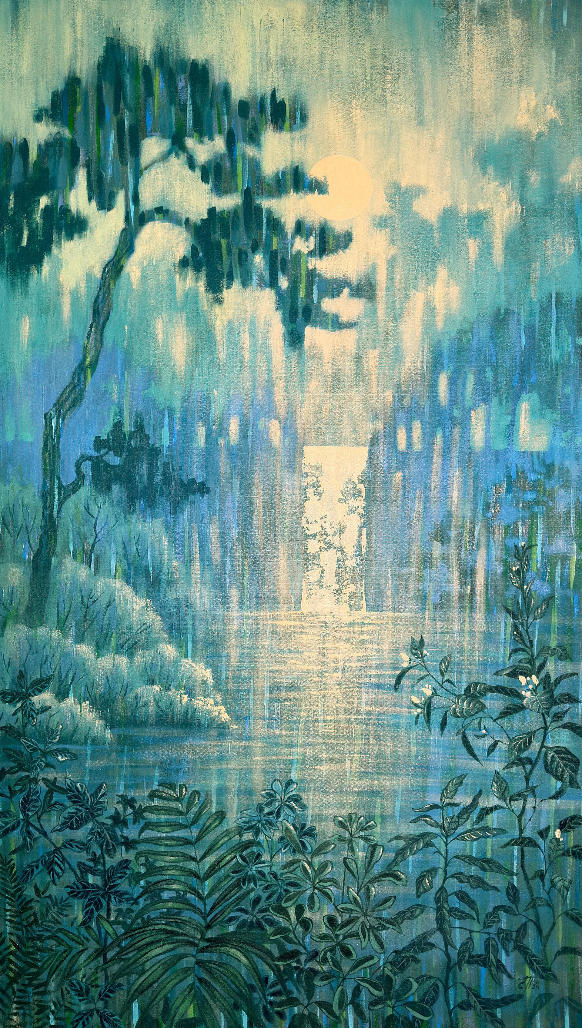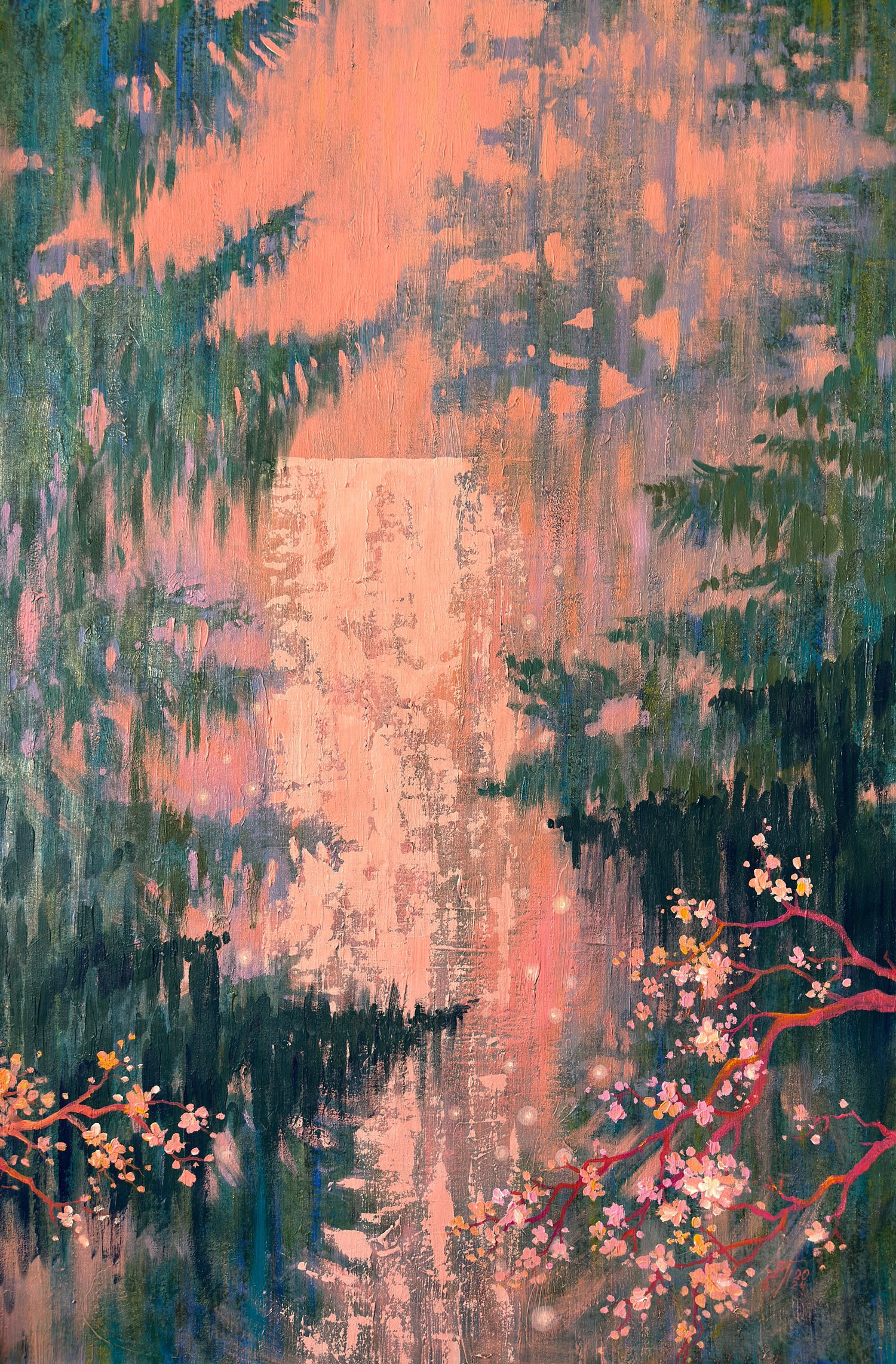 Semi-abstract landscape artworks that evoke a sense of calm, joy, and connection with nature. The artistic language blends detailed elements with abstract forms, exploring the fleeting beauty of natural moments.