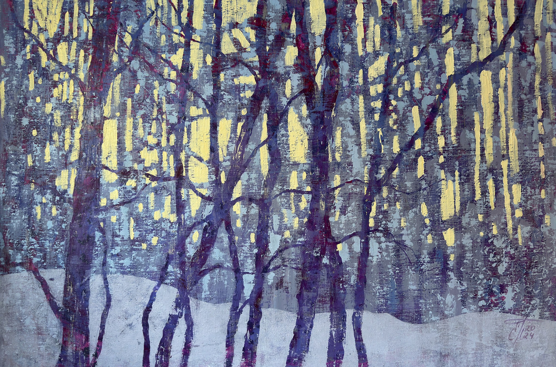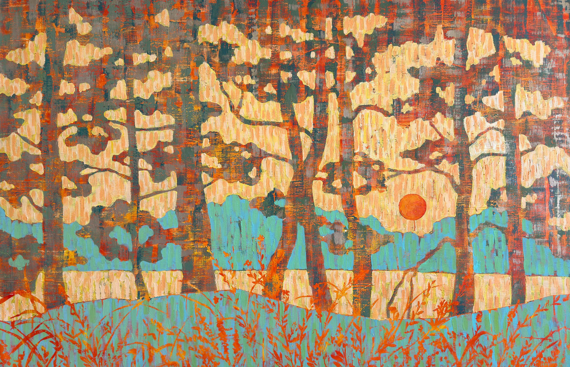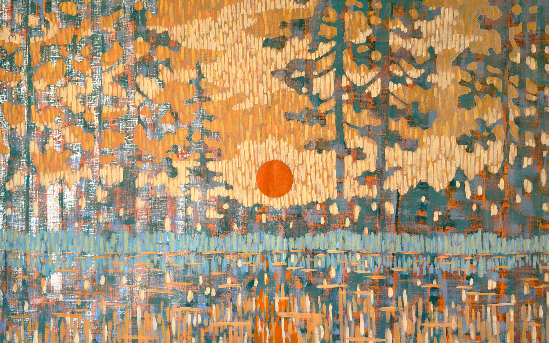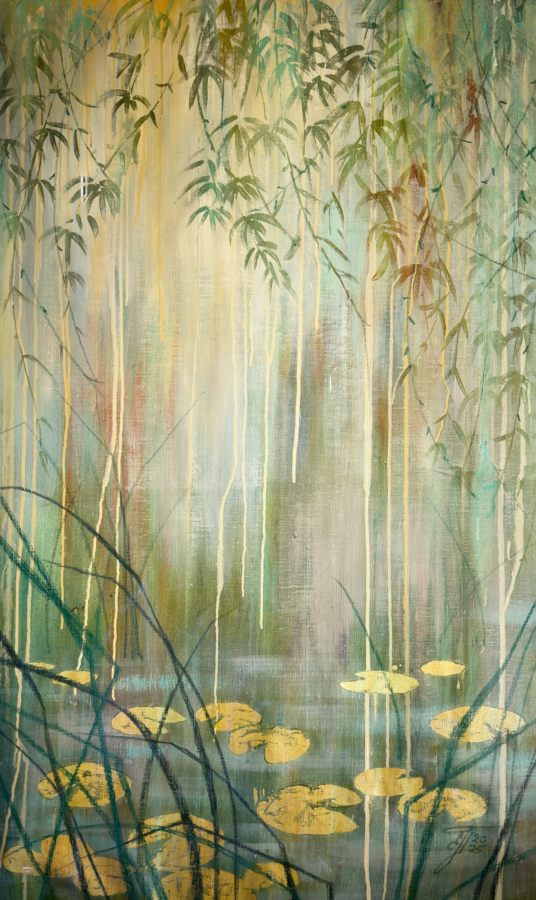 Semi-abstract landscape artworks that evoke a sense of calm, joy, and connection with nature. The artistic language blends detailed elements with abstract forms, exploring the fleeting beauty of natural moments.