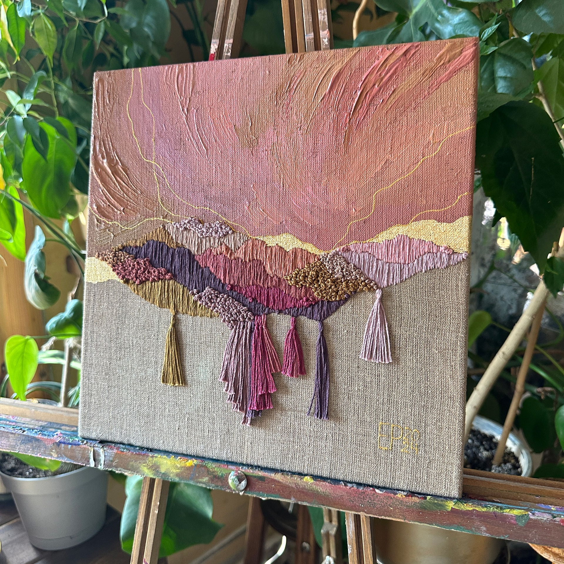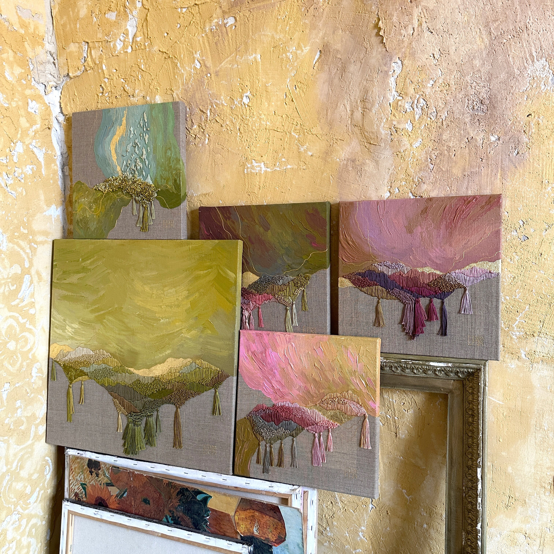 This project is an artistic exploration of the nature of color and its connection to the surrounding environment, materials, textures, and atmosphere. It includes a series of panels that rethink the very concept of color as a document of natural processes and experienced states. Each color is not merely a visual characteristic but a trace of time and the interaction of light, soil, water, plants, and air. Color is revealed in an inseparable combination with texture, a symbol of the materiality of the surrounding world. Drawing on the principles of Impressionism, the artist treats color as a key means to convey atmosphere and fleeting moments. However, unlike classical Impressionists, she is interested not only in the subjective optics of the artist but also in the objective nature of color, its origins, and the “memory” of the place where it comes from.